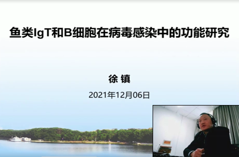 徐镇以“Novel roles of teleost IgT and mucosal B cells in antiviral immunity”为主题,从抗免疫的功能到进化上器官的进化,再到黏膜B细胞水平,层层递进,为大家详细讲解了鱼类在病毒感染时,黏膜B细胞、T细胞的互作应答机制和下游的信号传导途径,尤其是其中免疫球蛋白IgT、IgD、IgM所发挥的作用。最后提出了几点展望:IgT在未来能否成为鱼类精准抗病选育指标之一、鱼类免疫球蛋白在维持黏膜微生物稳态中的功能以及IgT靶向的益生菌为递送载体的鱼类黏膜疫苗的设计,这些为鱼类抗病育种设计提出了新思路。