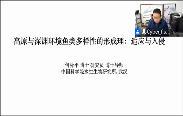 何舜平以“鱼类的适应性进化:一场四亿年的战争”为主题,从高原到深渊,详细介绍了鱼类适应性进化的故事。高原适应的代价使鱼类丧失了大部分的目、科、属等。发现HIF1α蛋白的表达量对鱼类适应高原环境起了重要作用。同时,通过比较转录组的组学分析,得出三种高原鱼类:鲤科、高原鳅属、鰋鰷鱼类相对于低海拔鱼类,进化速率均显著加快。报告中还介绍了在深渊狮子鱼研究成果,发现该鱼在适应深渊环境过程中,进化出了开放性骨骼,从而鉴定了影响头骨发育的关键基因,并在斑马鱼中进行了功能验证。最后,何舜平还介绍了其研究团队正在进行的万种鱼基因组Fish10K计划。