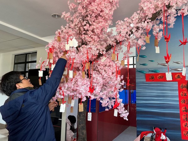 是在“年年有鱼”的红纸中寄托师生对未来事业的美好期盼。