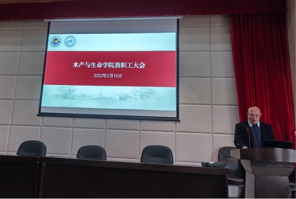会上,谭洪新院长以“优化学科架构,加快一流学科建设”为主题,就十四五期间学科建设、人员调整和绩效分配方案等作了详细介绍。学院将以水产种质生物学和绿色养殖省部共建国家重点实验室(筹建)为载体,以“水产学+生物学” 双学科为驱动,做大做强水产一流学科;围绕4个学科方向: 1.水生生物多样性保护与利用2.水产种质资源发掘与良种创制3.水产动物免疫与疫病生态防控4.水产绿色高效养殖与营养调控,进一步优化学科架构和调整基层组织。并对2022年学院的人才引进、项目申报、奖项申报和平台建设等重点工作予以讲解和推进。学院的“人才培养、科学研究、社会服务、国际交流”等职能将进一步融合到四个学科方向,构建高水平研究型学院,保持水产 A+ 学科,建成世界一流学科。