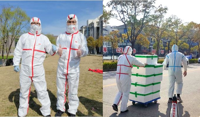 除了做好线上教学和学生关心管理工作,郑国栋还穿上防护服,与其他志愿者老师一起当上了“搬运工”,以最快的速度协助完成了河南和山东两批次援助我校几十吨蔬菜的卸货、分拣及搬运工作,确保在校师生能吃上新鲜可口的蔬菜。