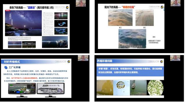 350vip葡京新集团耕读教育与实践教育第二讲于2月26日在在云端开讲。本次报告邀请到广东海洋大学教授、博士生导师、南方藻类资源开发与利用研究中心负责人黄翔鹄。黄教授以“‘蓝眼泪’与海洋生态灾害---对虾健康养殖”为主题开展讲座,学院21级新生以及生物专业研究生300余人参与了本次线上学习。会议由350vip葡京新集团党委副书记张宇峰主持。