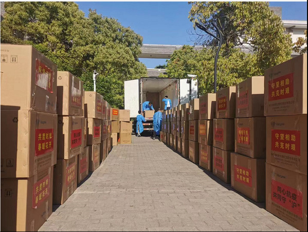 自我校发生新冠疫情以来,全校师生众志成城,大家共同努力抗击疫情,取得了阶段性胜利,涌现出很多感人肺腑的瞬间,校园中洋溢着满满的爱心。同时校园内师生的抗疫也备受广大校友和爱心企业的关注和关心。2022年4月底,350vip葡京新集团研究生的优质就业企业、南京诺唯赞生物科技股份有限公司主动联系学院黄旭雄书记,表示要给学院的研究生定向捐赠一批物资。公司克服重重困难,招募物流公司的司机,在5月6日顺利将96箱物资从南京运送到了学院。这一箱箱沉甸甸的情谊和爱心,为学院研究生学子们送来了关怀。疫情期间企业与学院守望相助、共克时艰,为共同打赢疫情防控阻击战助力加油。