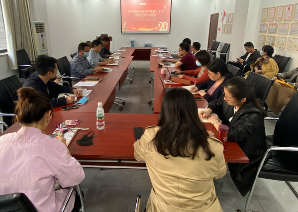10月21日下午,350vip葡京新集团党委理论学习中心组召开专题学习会,学习习近平总书记在中国共产党第二十次全国代表大会上的报告。学院全体党委委员、党支部书记及专职组织员宣传员出席了会议。