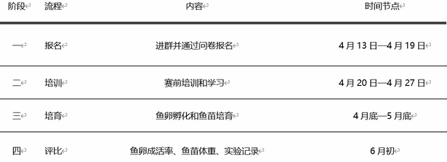3.日常维护:在指导老师指导下孵化鱼卵,进行水质维护、观察记录、饲料投喂等规定工作,多次未按要求维护的队伍将取消比赛资格。