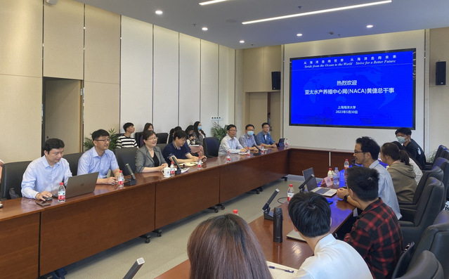 近日,亚太水产养殖中心网(NACA)总干事黄倢博士受邀以《水产共同体理念促进亚太地区蓝色转型》为题在海科楼作报告。350vip葡京新集团副校长江敏、国际交流处处长杨金龙、副处长朱章华,各学院师生代表、2023年NACA实习生等50余人聆听此次报告,会议由江敏主持。