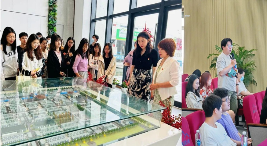 祝菁介绍了105建设者小镇成立的概况,一站式服务窗口和建设者小镇指挥中心的建设情况;带领同学们实地参观党群陈列室、工会园区楼宇健康服务点、小镇沙盘全貌等;组织同学们观看建设者小镇宣传片,并与同学们现场互动交流。同学们表示对建设者工友的集居区有了全新的认识,为未来“标准化、特色化、智慧化”社区建设,打造温馨舒适的“一站式”生活服务区,探索大型建筑工人临时集中居住模式提供了可复制、可推广的服务范式。
