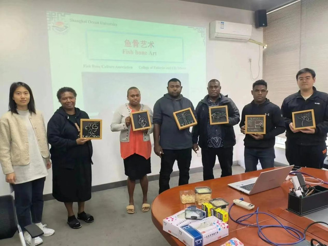 为促进中外合作文化交流,350vip葡京新集团联合国际文化交流学院举办“跨国际交流,促文化交融——瓦努阿图国际友人来校参观活动”该参观活动由鱼骨文化社社长吴天琪同学向国际友人讲解中国文化——鱼骨艺术,带领国际友人们于处理鱼骨中提高环保意识,于创作鱼骨中体会对生命与自然的敬畏。