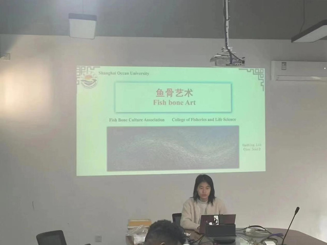 为了给国际学生们一个圆满的文化体验,吴天琪同学授课特意选用了中英文双语课件,向各位国际友人们简述了鱼骨画的发展历史和艺术风格,并传授了鱼骨画的制作方法,最后展示了我校学生制作的精美鱼骨画。