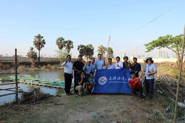 项目组在柬埔寨皇家农业大学实验渔场的合影
