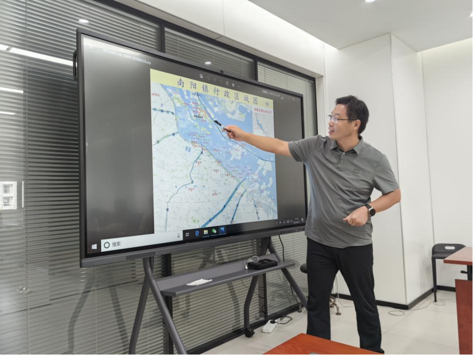 刘虎镇长介绍了南阳镇辖区基本情况,重点介绍了南阳主岛古运河段水系、水深、水质和运河湿地运行、雨水湿地建设情况,提出了改善古运河段水体浑浊的基本诉求。