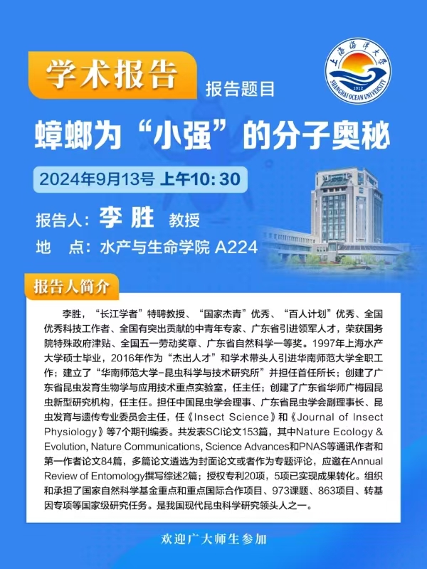 学术报告——蟑螂为“小强”的分子奥秘——李胜教授