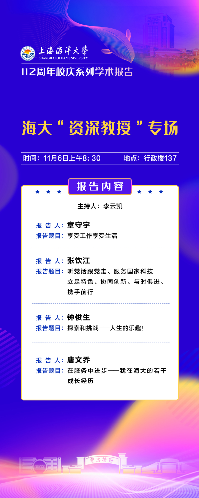 学术讲座通知:112周年校庆系列学术报告——海大“资深教授”专场
