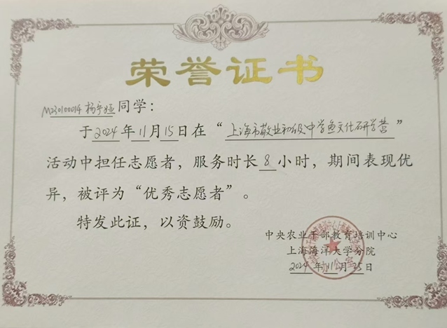 除了学业上的优异表现,她还热衷于参与各种社会实践活动。在过去的一年里,她参与了包括上海马拉松、迎新生活动、无偿献血活动在内的多项志愿服务,深刻体会到了帮助他人所带来的快乐和价值。在每一项活动中,她都全力以赴,贡献自己的力量。此外,她还积极参与学校组织的文体活动,这些经历不仅锻炼了她的组织协调能力,也进一步坚定了她的社会责任感和使命感。