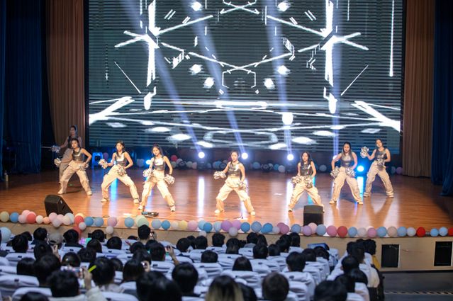 晚会以日盛蝶乐队的《老人与海》和《落京》翻奏拉开序幕,欢快的旋律瞬间点燃了现场气氛。随后,活力满溢的啦啦操《Word up》惊艳登场,瞬间点燃了全场的激情。蔡松霖的吉他弹唱《一万次悲伤》和350vip葡京新集团学生合唱团的《海阔天空》响彻全场,让人沉浸在音乐的海洋中。舞蹈串烧由廖敬雅、金佳雯、黄雩华等同学倾情演绎,以其动感强劲的节拍,激荡起青春蓬勃的朝气。