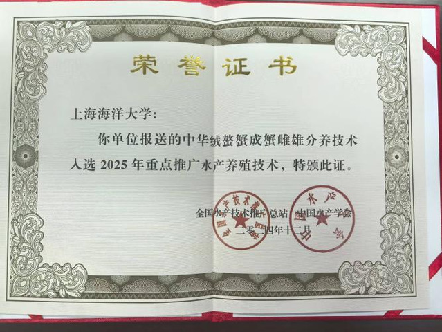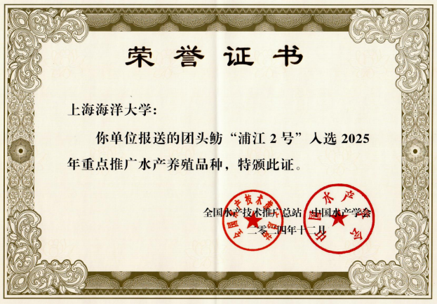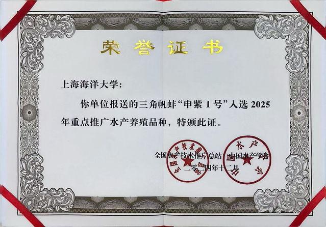 近期,全国水产技术推广总站和中国水产学会公布了2025年重点推广水产养殖品种和重点推广水产养殖技术。经各单位推荐和专家评审等程序,共遴选出20个重点推广水产养殖品种和19 项重点推广水产养殖技术。我校牵头培育的三角帆蚌“申紫1号”和耐低氧团头鲂“浦江2号”入选重点推广水产养殖品种,研发的“应用人工配合饲料养殖鳜鱼关键技术”和“中华绒螯蟹成蟹雌雄分养技术”入选重点推广水产养殖技术。这是我校入选全国水产技术推广总站重点推广水产养殖品种和重点推广水产养殖技术数量最多的一年,彰显了我校水产学科深入实施创新驱动发展战略,服务促进高质量发展的能力。