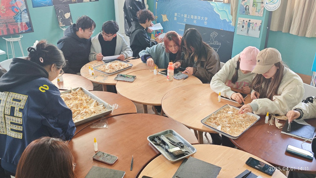来自不同民族的预科生同学对这次体验活动表现出了极高的热情同学们两人一组投入到创作中。在合作过程中,大家分工明确又相互协作。有的小组中,一位同学擅长构思设计,凭借丰富的想象力勾勒出画面的整体轮廓,从灵动的海洋生物到宁静的沙滩,各种创意在脑海中迸发;另一位同学则心灵手巧,负责精细地挑选鱼骨,根据设计将鱼骨小心翼翼地粘贴到相应位置