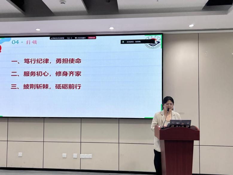 党服中心指导教师焦美林从“笃行纪律,勇担使命”、“服务初心,修身齐家”、“披荆斩棘,砥砺前行”三个方面,结合自身经历引领党服中心成员在实干中提升党性修养。