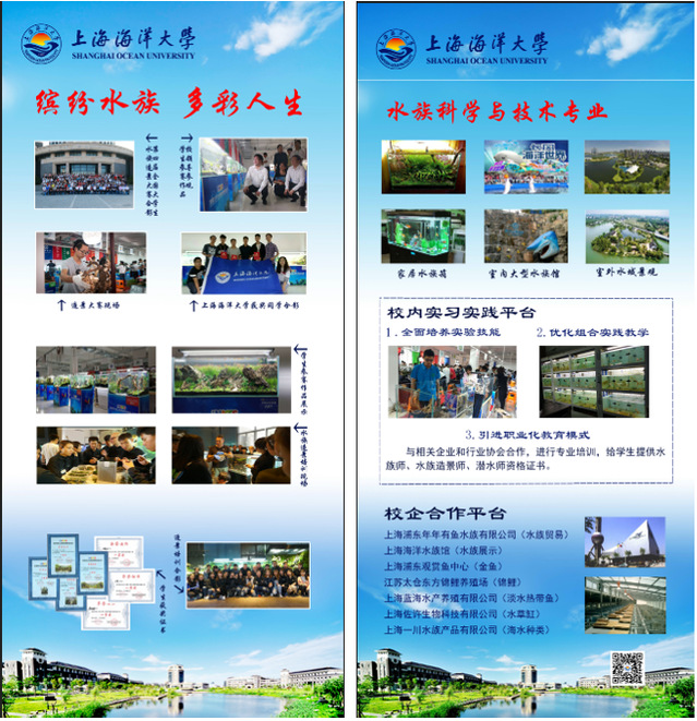 同期,我校携手合作单位共鳞实业(深圳)有限公司、上海一川水族产品有限公司、邦星生物科技(上海)有限公司和上海蓝海水产发展有限公司等企业进行产品展示和宣传。