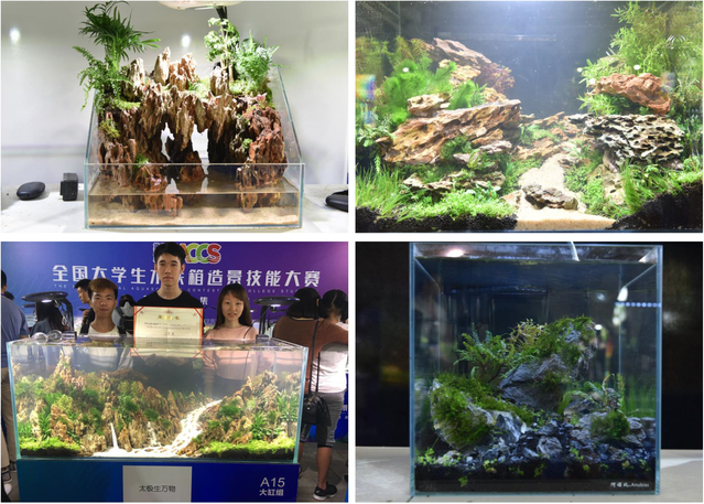 在一天紧张而激烈的造景过程中,我校学子前期细心充分的准备发挥出了优势,陆续克服了底泥少、素材小、时间短等困难,准时高质量完成造景任务。14日上午,经过国际大赛造景冠军张剑锋、邹维新等专家的评定,我校4个参赛队在全部139个参赛队中总体实力突出,大型缸、中型缸和水陆缸作品在3个单项赛中名列前茅,成绩优异。骨架稳定性、水草种植搭配和细节处理等方面获评委好评。其中,2016级水族专业潘韵超制作的《别有洞天》获水陆缸组一等奖,2017级水族专业黄道驰制作的作品《仲夏之旅》获中型缸组一等奖,2016级动物医学专业冯梓钊、2016级水族专业邓象月和2017水产养殖专业蒋康鸿共同制作的《太极生万物》获大缸组二等奖,2016级水产养殖专业学生张景航的作品《散》获微型缸组三等奖。