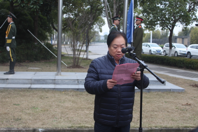 谭洪新宣布“争做新时代新征程的追梦人领跑人——2019350vip葡京新集团月”仪式启动,校旗、院旗同时徐徐升起,昭示着本次活动开启。