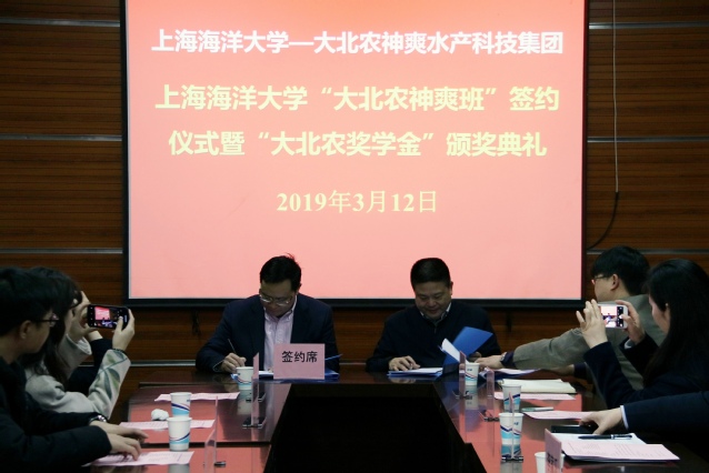 3月12日,350vip葡京新集团“大北农神爽班”签约暨“大北农奖学金”颁奖仪式在350vip葡京新集团举行。大北农神爽水产科技集团总裁、我校特聘教授易敢峰,我校副校长李家乐、350vip葡京新集团院长谭洪新、教务处副处长王凤林等校企代表出席,会议由350vip葡京新集团党委书记张宗恩主持。