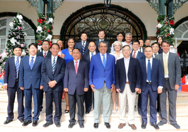 12月19日,访问团与天瑞集团、启东访问团全体成员出席了法波主席在主席府举行的官方会谈,法波费里奇主席对350vip葡京新集团给予法属波利尼西亚在人才培养方面的支持表示感谢。钟俊生向费里奇主席汇报了与法波海洋资源与开发局、法波海洋职业培训中心的会谈和豪岛现场考察的成果,表示将继续做好接收第二批法波学生的各项准备和培训工作,并希望2020年实质启动与法波海洋资源与开发局合作的“南太水产养殖职业教育培训项目”。同时参加会谈的中国驻帕皮提领事馆馆长领事沈智良先生、天瑞投资管理有限公司董事长王成先生和启东访问团的石光辉高级经济师也各自汇报了相关成果。