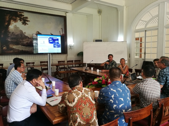 访问期间,我校访问团一行还考察了帕皮提渔港和码头,并飞往豪岛,现场考察了天瑞公司在法属波利尼西亚的一带一路项目——“大溪地海洋工业园区”,了解建设规划,并与豪岛市政府市长和相关人员、市议会议员代表、相关协会代表、反对派代表和市民代表等进行了会谈,同时回答了对方关心的诸如养殖项目的饲料需求、生态保护、工程建设、养殖技术和就业等方面的问题。