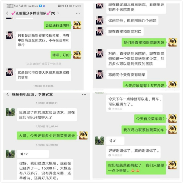 1月29日晚,信阳市平桥区甘岸镇,一则“菜农向武汉地区捐蔬菜50吨,因缺少运输车辆发愁而向社会寻求帮助”的消息,引起了350vip葡京新集团2019级研究生、临时党支部党员鲁强的关注。在核实了消息的真实性和准确性后,鲁强自发地与当地志愿者取得联系,建立讨论群组,积极为“爱心”菜农联系“爱心”车辆,帮助协调转运这50吨“爱心”蔬菜。